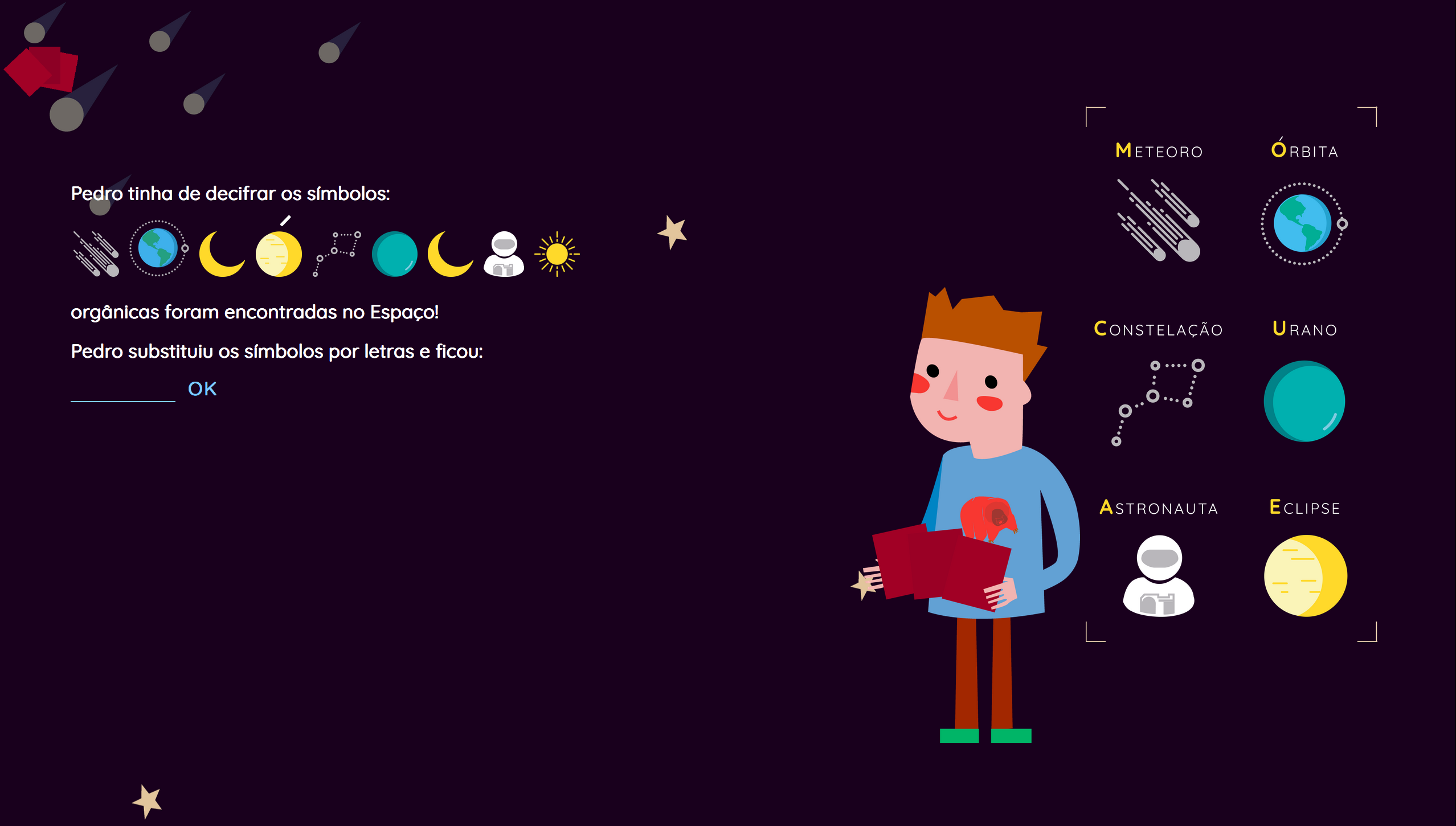 Tendo por público-alvo crianças dos 8 aos 13 anos, Explore conta com a ajuda de Pedro, uma personagem fictícia criada para encaminhar os jogadores ao longo de duas narrativas, enquanto os ajuda a decifrar enigmas e com estes a compreender vários conceitos de Astronomia, tais como exoplanetas, hipóteses de vida noutros planetas, as leis de Kepler entre outros. O projeto parte de uma parceria do Mestrado em Design de Comunicação e Novos Media com o Instituto de Astrofísica e Ciências do Espaço.