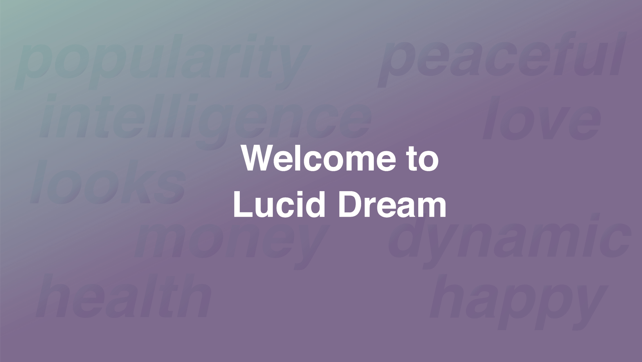 Lucid Dream é uma counter-app que critica o uso de aplicações de gestão e optimização de várias dimensões do nosso quotidiano. Para tal, faz uso de uma abordagem crítica e irónica aos aplicativos de self-improvement, aludindo à sua aparência e mecânica comuns. A app tem por base um questionário sobre diversos aspetos que o utilizador poderá querer mudar em si e na sua vida, ou por outras palavras, a transformar-se numa versão melhor de si mesmo.