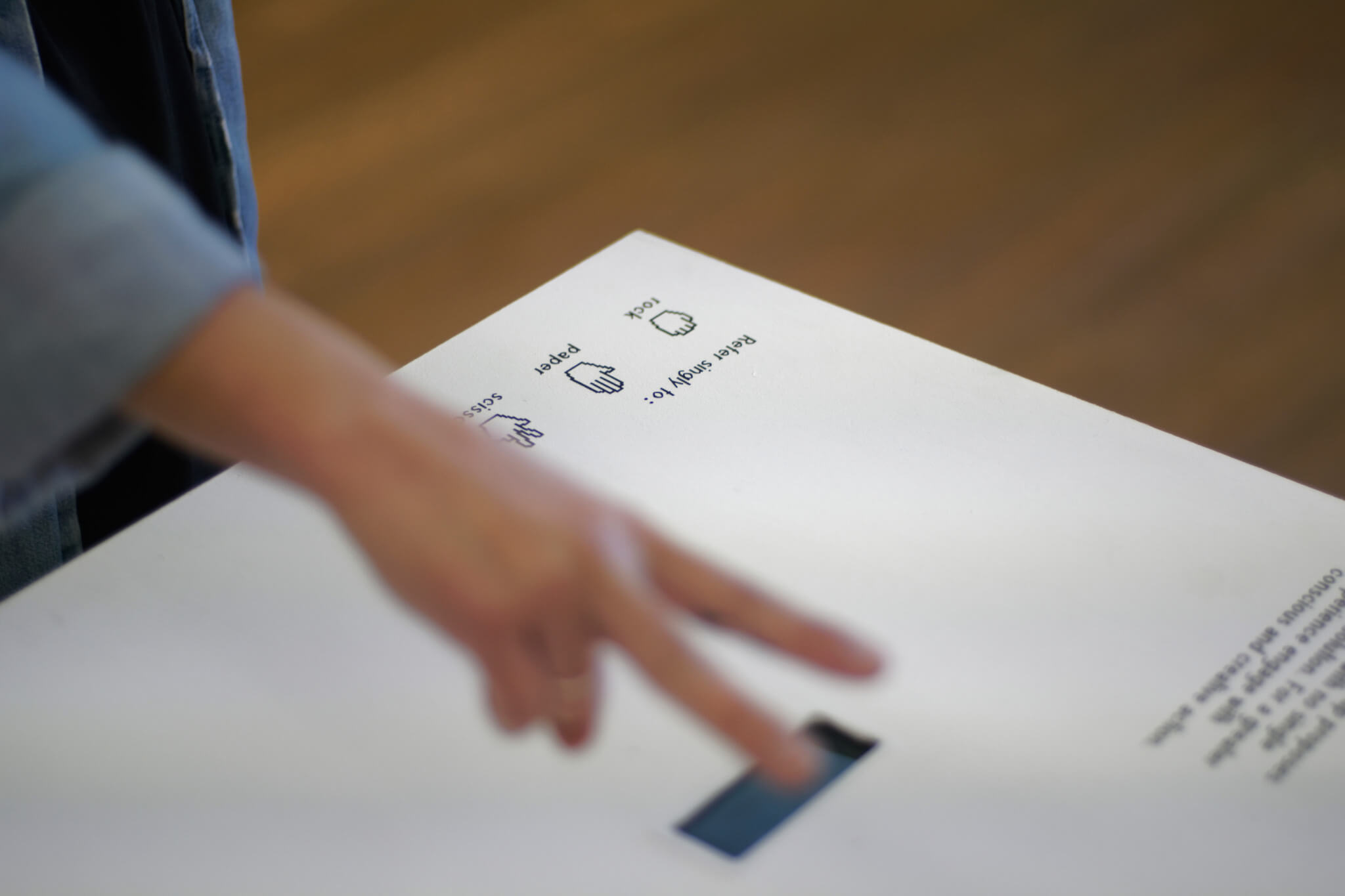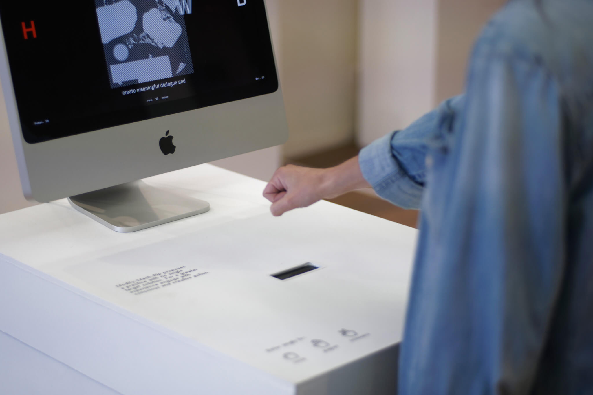 A partir de uma analogia ao jogo “pedra–papel–tesoura”, que estabelece uma lógica condicional através de um set limitado de gestos/ferramentas, serão questionadas as possibilidades de subversão de alguns princípios ou padrões estandardizados. Desta forma, pretende convidar o utilizador a observar e a repensar os valores expostos, dentro das condições configuradas e das ferramentas disponíveis, motivando uma prática exploratória sistemática no diálogo entre a tecnologia e o input humano.